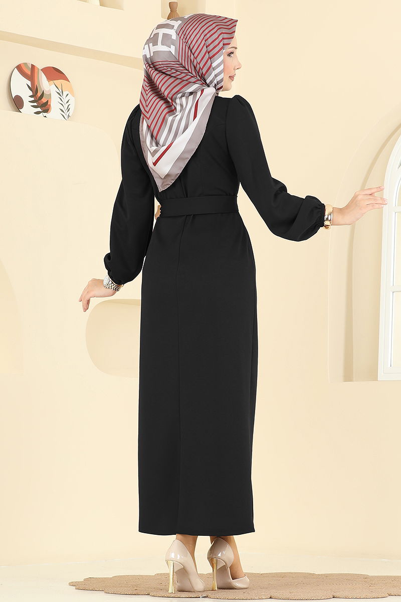 المنتج لديه ياقة دائرية. غير مبطنة. المنتج يحتوي على حزام خصر مُخاط. الحزام متضمن، ،يمكن استخدامها حسب الرغبة السوار مطاطي. قد يكون هناك اختلاف في الدرجة اللونية في المنتج بسبب التقاط الصور الفوتوغرافية.