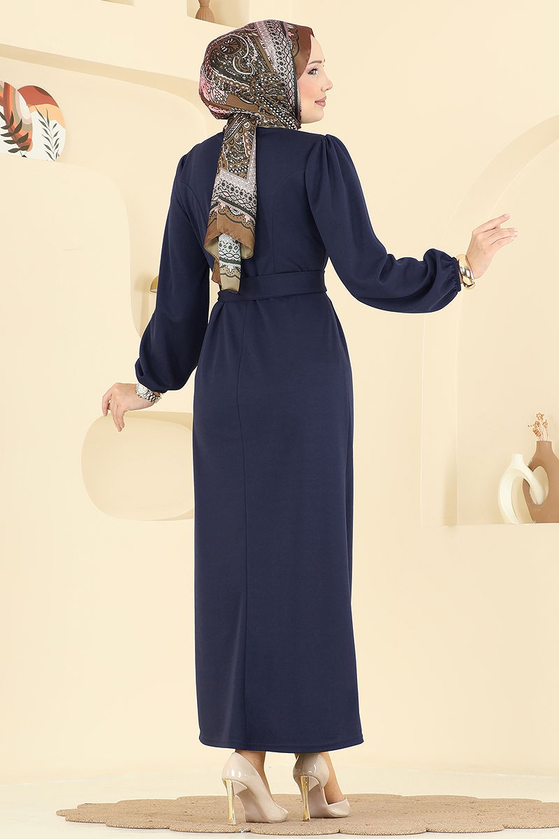 المنتج لديه ياقة دائرية. غير مبطنة. المنتج يحتوي على حزام خصر مُخاط. الحزام متضمن، ،يمكن استخدامها حسب الرغبة السوار مطاطي. قد يكون هناك اختلاف في الدرجة اللونية في المنتج بسبب التقاط الصور الفوتوغرافية.