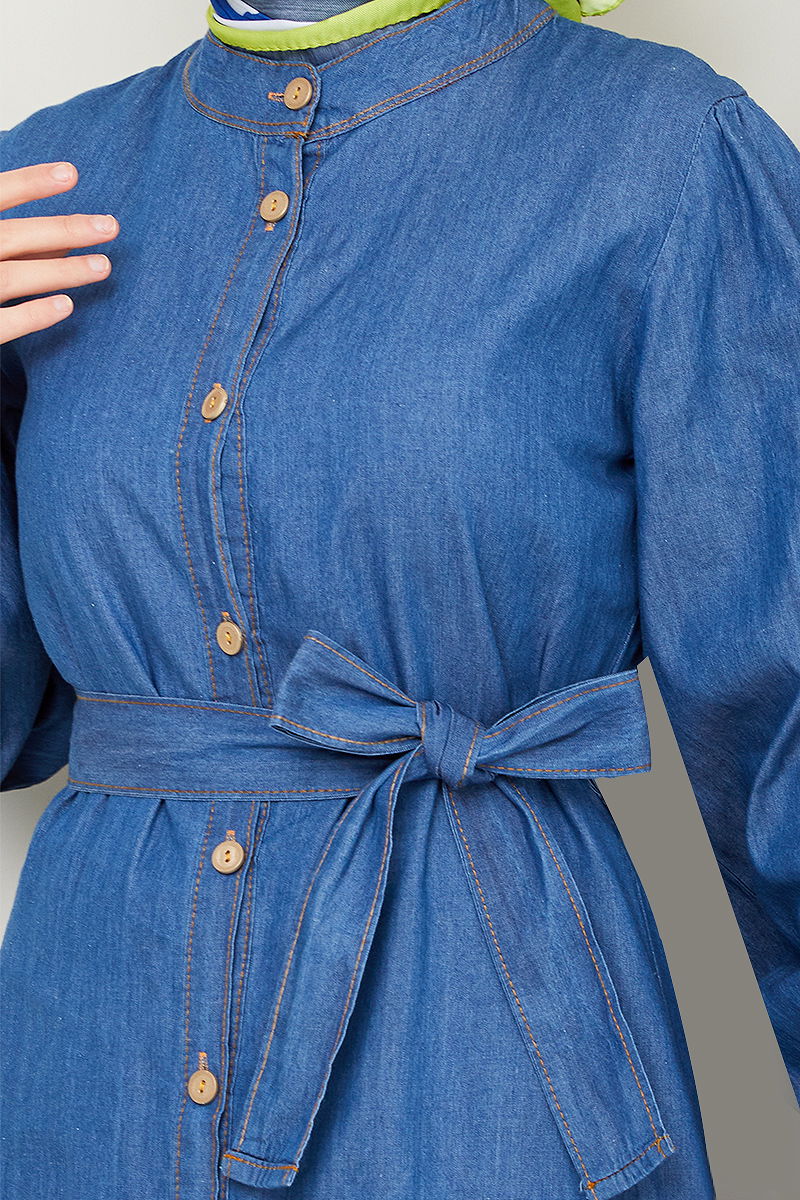 المنتج لديه ياقة نصف بيضوية. المنتج به أزرار من الأمام. غير مبطنة. الحزام متضمن، ،يمكن استخدامها حسب الرغبة السوار مطاطي. قد يكون هناك اختلاف في الدرجة اللونية في المنتج بسبب التقاط الصور الفوتوغرافية.