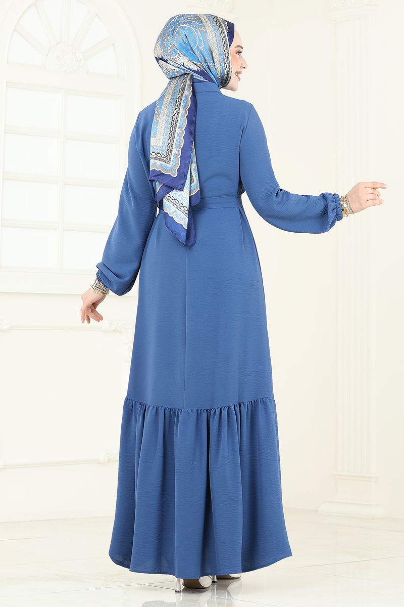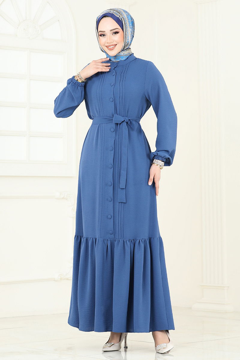 المنتج لديه ياقة نصف بيضوية. المنتج به أزرار من الأمام. غير مبطنة. الحزام متضمن، ،يمكن استخدامها حسب الرغبة السوار مطاطي. قد يكون هناك اختلاف في الدرجة اللونية في المنتج بسبب التقاط الصور الفوتوغرافية.