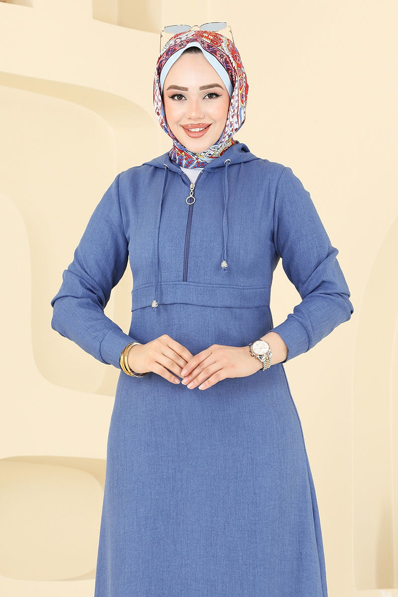 Chic and functional, the Hooded Hijab Dress offers comfort and durability with its Sofia linen fabric, suitable for all seasons. Easy to care with its recommendation for gentle wash at 30 degrees, this dress provides practical use with its hood and half-zip detail. Although not including a blouse, it allows for stylish combinations with different tops. The broad drawstring hood and stitched waist detail add a modern touch.