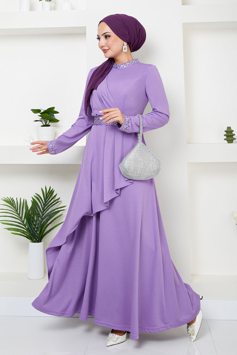 Product Feature : It is a new season hijab fashion product. It has a button that can be used from the back. The product is flounced from the skirt part. The belt is included in the product, it may not be used optionally. Stones are glued. There may be a tonal difference in the product due to concept photo shoots.