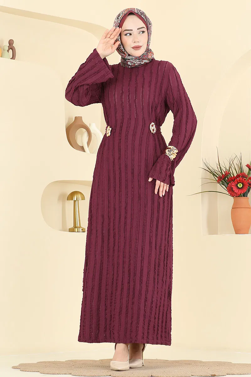 Chic and practical, this Belted Knit Dress is a modest wear model that can comfortably be used in all seasons. Made of delicate Amozon fabric, it can be washed at 30 degrees and is durable. Its crew neck and button details at the back provide a modern look. The unlined design makes it light and comfortable. The included accessory can be used to create different outfits, and the sewn belt adds an elegant touch.