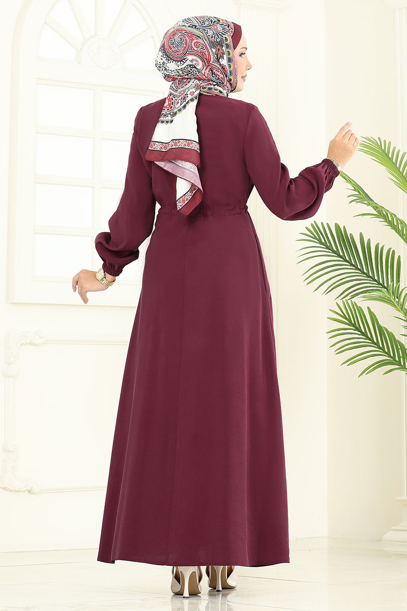 The Accessorized Pocket Modal Dress is designed to maintain your elegance throughout all seasons as a modest fashion item. This dress, which can be washed at 30 degrees due to its delicate nature, is made from modal fabric. It offers practical use with its shirt collar design and half-buttoned front. This unlined model provides a comfortable fit with its tied and seamed waist. The included belt is designed with secured ends to prevent rippling, and can be removed optionally. Elastic cuffs and a pocket detail add a modern accessory touch to the design.