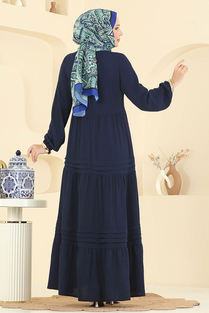 Featuring a tiered and elegant design, the Aerobin Dress is comfortable to wear in all seasons. Made from Aerobin fabric, it is lightweight and breathable, ensuring comfort throughout the day. The dress is designed for modesty with a bicycle neckline and elastic cuff details, presenting a modern look. It's unlined for a light and comfortable wear, and can be washed at 30 degrees on a gentle cycle. It also features a button at the back for easy wear.