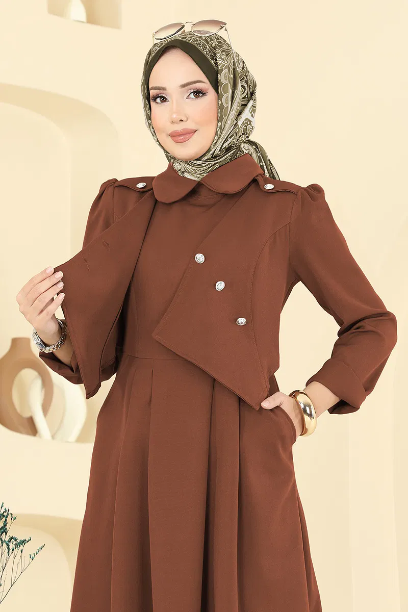Product Feature : It is a new season hijab fashion product. Bolero detail is sewn onto the product. The product has a Bebe collar. Unlined. The product has a zipper at the from the back part. Buttons are active. The product has a pocket. There may be a tonal difference in the product due to concept photo shoots.