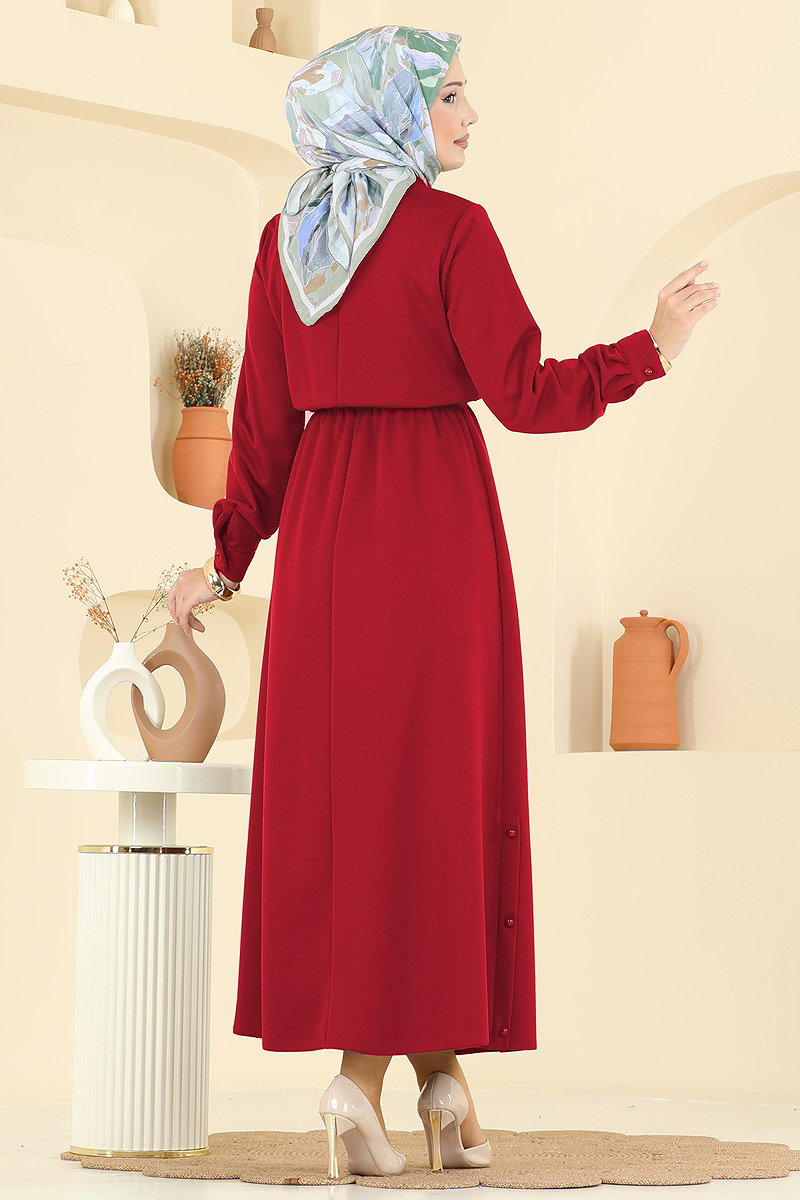The Shirt Collar Tunnel Waist Dress is designed for comfort across all seasons. Washable at 30 degrees due to its delicate nature, this modest dress is made from knitted Dabıl fabric. Featuring a shirt collar, the product has half-buttons on the front and adjustable drawstring at the waist. It also boasts functional pockets and active cuff buttons, presented in a size 38 for a stylish look.