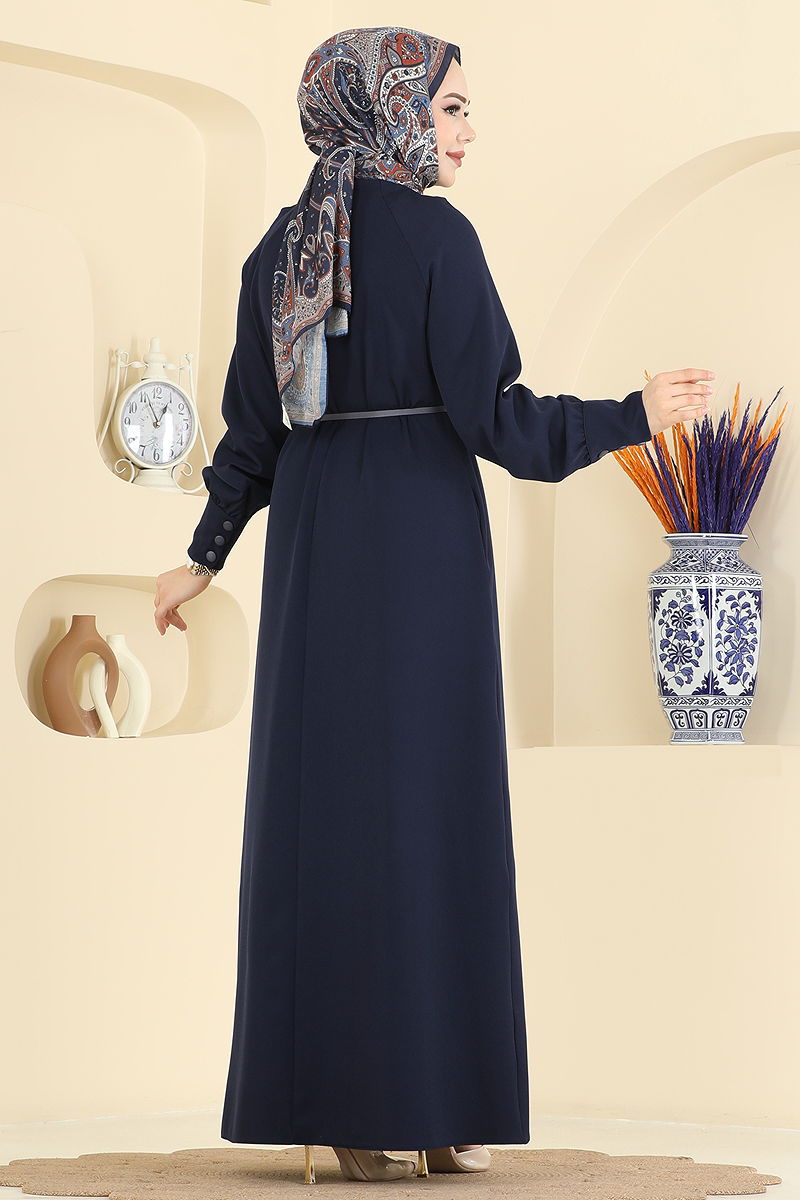Elegant and functional, the Snap Button Detailed Dress is perfect for any season, adopting modern lines in modest wear. It offers a long life with its 30-degree delicate wash feature. The bicycle neck and unlined structure provide comfort, while the active snap buttons on the cuffs offer practical use. The removable tie detail can be adjusted for different styles as desired. The example with size 38 on the model gives you an idea.