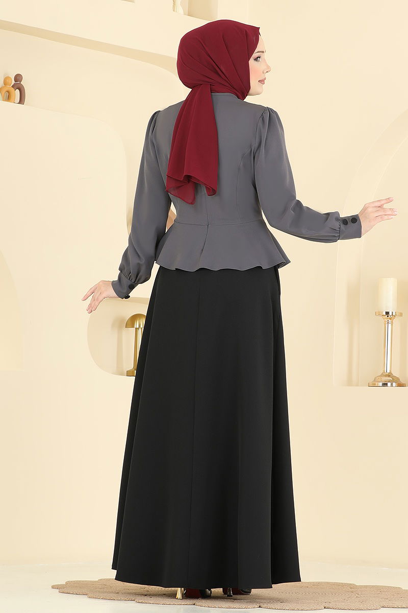 Offering both elegance and comfort, the Accessorized Buttoned Dabıl Dress is a hijab fashion item suitable for all seasons. This dress can be gently washed at 30 degrees and is made from durable Dabıl fabric. It features a bicycle neck design, adding a modern touch, and is practical with its lining-free structure and zipper at the back. The waist is stitched, and the cuff buttons are decorative accessories, standing out with an eye-catching detail. This unique design, combining functionality and aesthetics, is a must-have in every stylish woman's wardrobe.