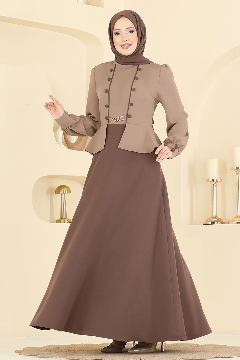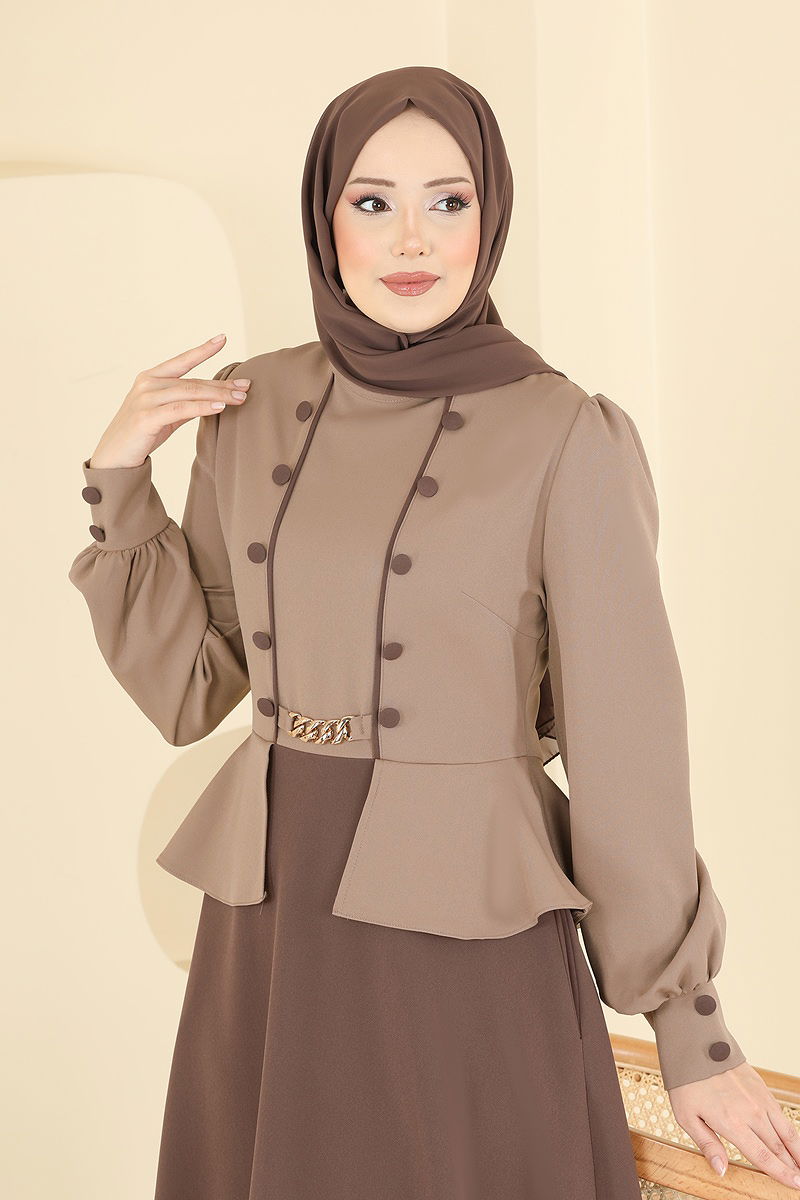 الفستان بيج غامق وبني 2810SL432