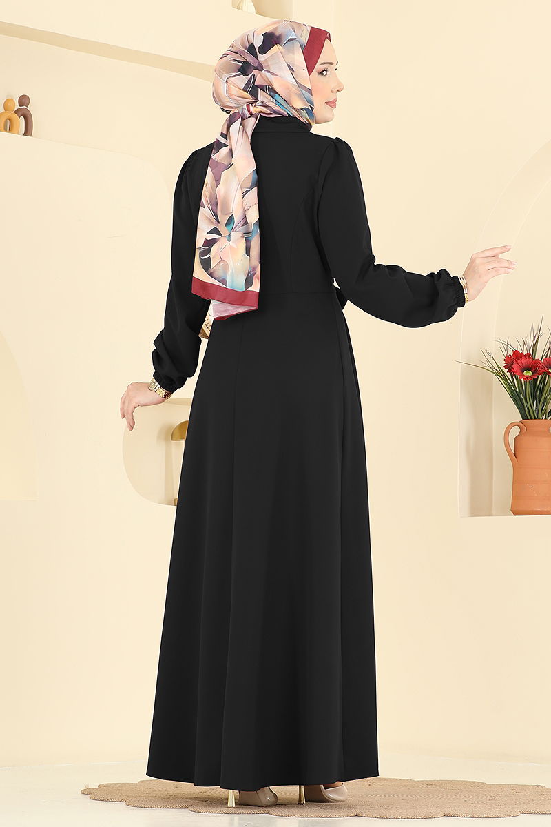 Showcase your elegance throughout all seasons with the Criss-Cross Neck Tie Dress, which blends modest fashion with modern lines. Made from dabıl fabric that requires gentle care, it offers practical use with its washability at 30 degrees. Its cross neck and half-button design provide both comfort and style. This dress, with its elastic cuffs, offers a comfortable fit, while its unlined structure makes it light and breathable.
