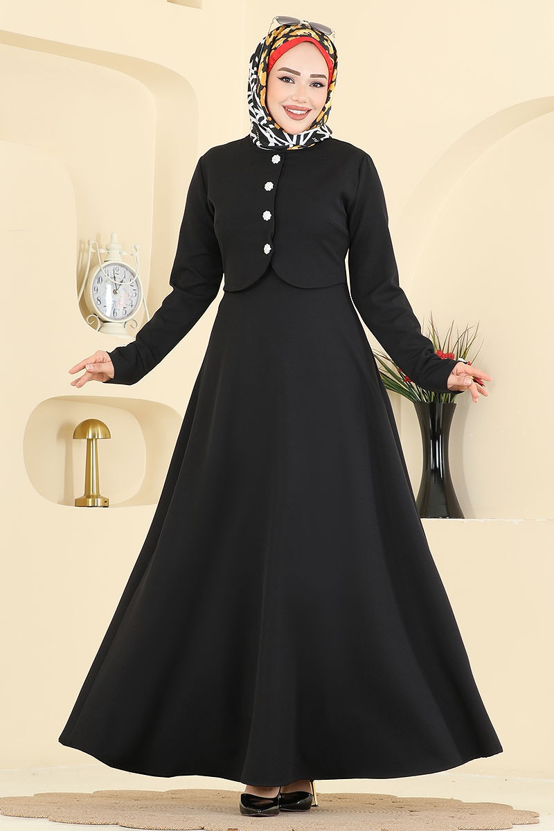 Elegant and stylish, the Bolero Detailed Dress is a product dedicated to modest fashion. Suitable for all seasons, this dress is made from Dabıl fabric suitable for gentle washing at 30 degrees. Its bike-neck design and front-buttoned style offer practicality, while the zipper at the back adds a modern touch. The integrated bolero detail makes this dress unique, and you can complete your style with the accessory buttons on the cuffs. The product displayed is in size 38.