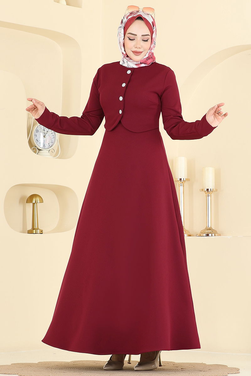 Elegant and stylish, the Bolero Detailed Dress is a product dedicated to modest fashion. Suitable for all seasons, this dress is made from Dabıl fabric suitable for gentle washing at 30 degrees. Its bike-neck design and front-buttoned style offer practicality, while the zipper at the back adds a modern touch. The integrated bolero detail makes this dress unique, and you can complete your style with the accessory buttons on the cuffs. The product displayed is in size 38.