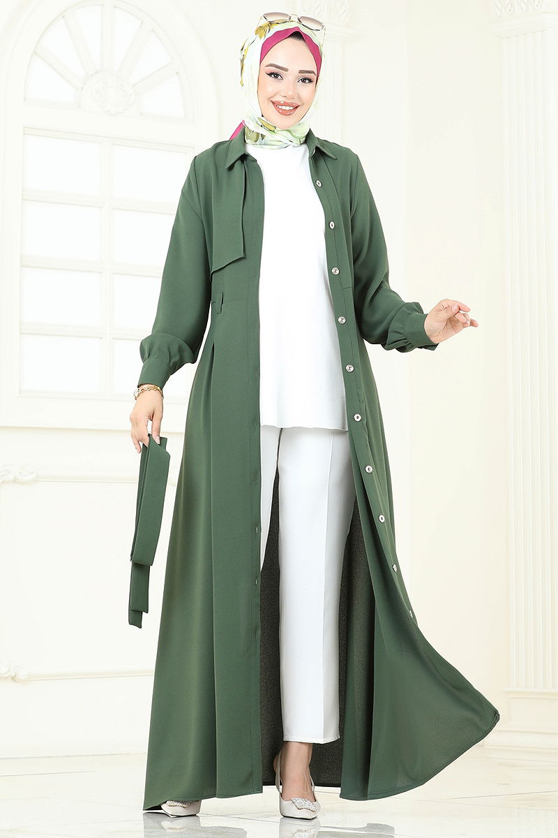 المنتج لديه ياقة القميص. المنتج به أزرار من الأمام. غير مبطنة. المنتج يحتوي على حزام خصر مُخاط. الحزام متضمن، ،يمكن استخدامها حسب الرغبة الجيب متاح. أزرار الكفة نشطة. قد يكون هناك اختلاف في الدرجة اللونية في المنتج بسبب التقاط الصور الفوتوغرافية.