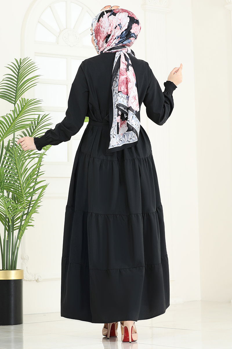 The Bolero Detail Tericotton Dress is an ideal modest apparel suitable for wearing across all four seasons. This dress can be washed with delicate care at 30 degrees and is crafted from durable and stylish tericotton fabric. Featuring a crew neckline and an unlined design, it offers a modern and practical look. The back-button detail enables easy wear while the hem has fixed ends with an option to remove the middle belt as preferred. Its elastic cuffs ensure a comfortable fit. The displayed model wears size 38, perfectly suiting her measurements: Height 167 cm, Chest 90 cm, Waist 70 cm, Hips 100 cm.