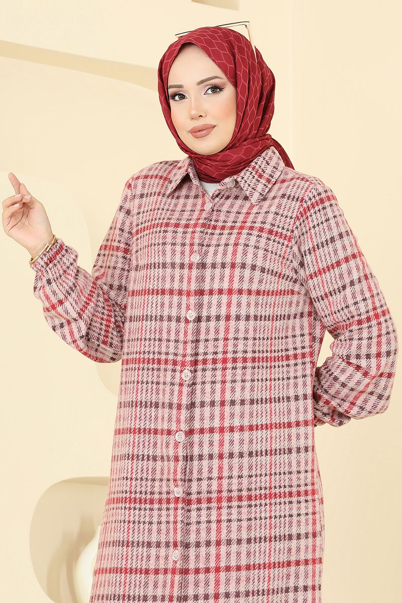The Plaid Tunic with a Shirt Collar is an ideal modest wear tunic model for autumn and winter. Suitable for gentle wash at 30 degrees, this product is made from plaid fabric. It offers a stylish and practical use with a shirt collar design and front button detail. The tunic is unlined and features elasticated cuffs, with the product on the model being size 38.