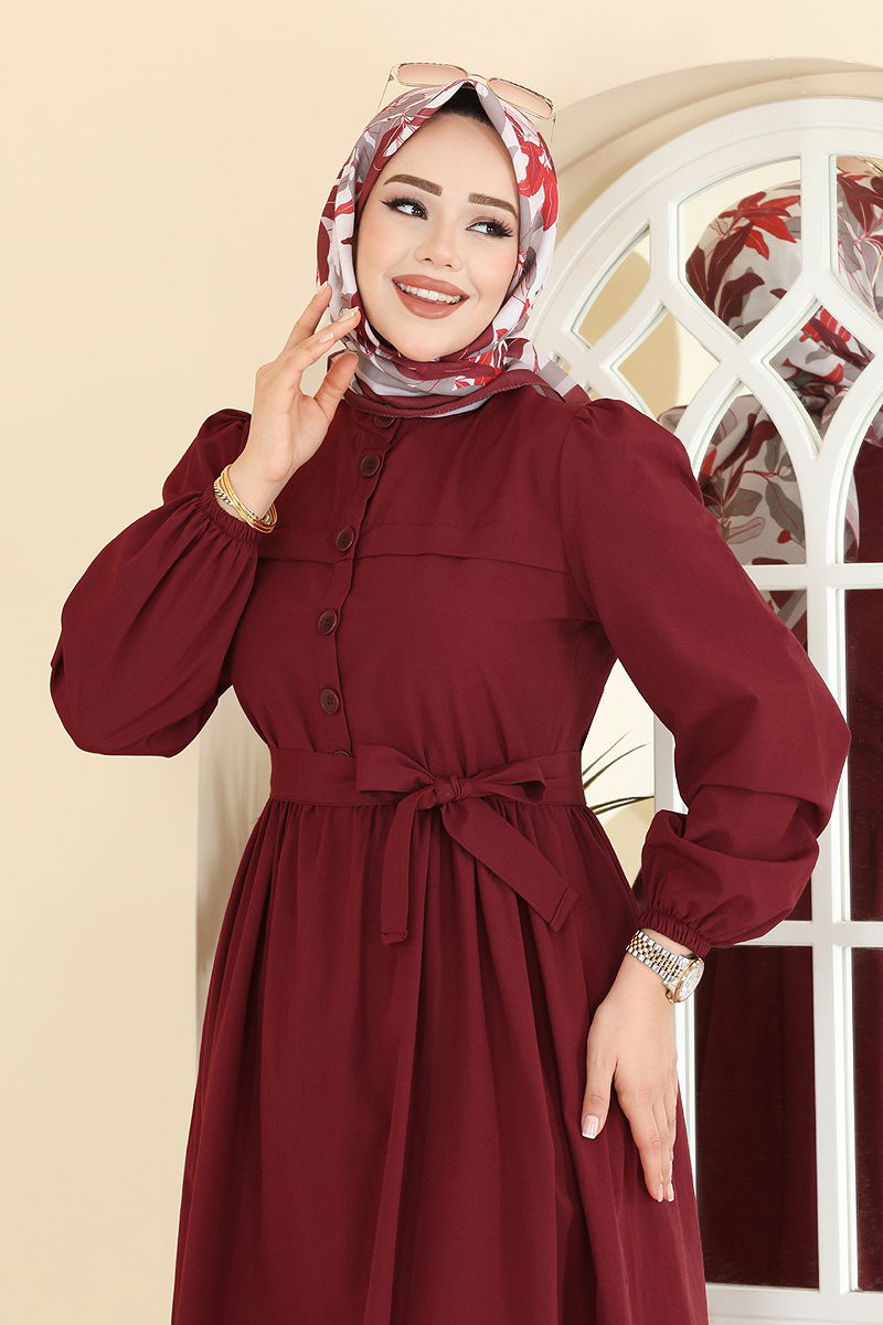 المنتج لديه ياقة نصف بيضوية. المنتج به أزرار نصف أمامي. غير مبطنة. المنتج يحتوي على حزام خصر مُخاط. الحزام متضمن، ،يمكن استخدامها حسب الرغبة السوار مطاطي. قد يكون هناك اختلاف في الدرجة اللونية في المنتج بسبب التقاط الصور الفوتوغرافية.