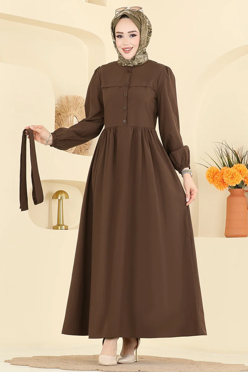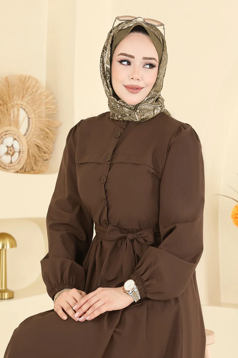 المنتج لديه ياقة نصف بيضوية. المنتج به أزرار نصف أمامي. غير مبطنة. المنتج يحتوي على حزام خصر مُخاط. الحزام متضمن، ،يمكن استخدامها حسب الرغبة السوار مطاطي. قد يكون هناك اختلاف في الدرجة اللونية في المنتج بسبب التقاط الصور الفوتوغرافية.