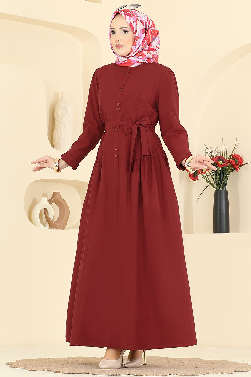 With its design and comfort, the Front Double Buttoned Dress is ideal for maintaining your elegance throughout all seasons. This hijab dress, which can be washed at 30 degrees with its delicate washing feature, is made of durable terrycotton fabric. It offers a comfortable use with its crew neck and unlined design. This model, which has a zipper at the back, provides practical use. It features decorative buttons on the front and the belt complements the elegance, but can be optionally removed.