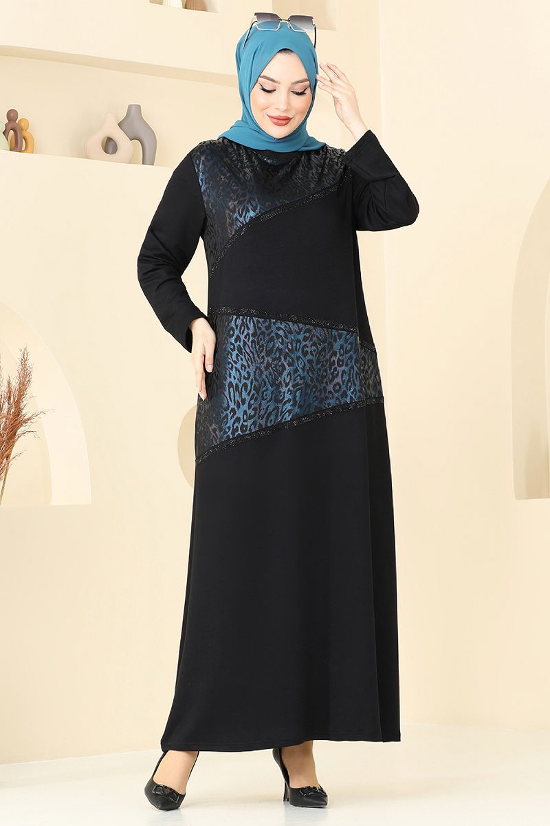 Showcase your style in all seasons with this Leather-Detailed Hijab Dress. Made from lightweight and durable fabric, this dress can be washed at 30 degrees with gentle care. Adorned with crystal details and dual-thread fabric, it offers a captivating look. The bike neck and unlined design prioritize comfort, ensuring you maintain elegance in every situation. Measuring 167 cm in length, the dress has an easy-to-wear structure. The stones are attached with adhesive methods.