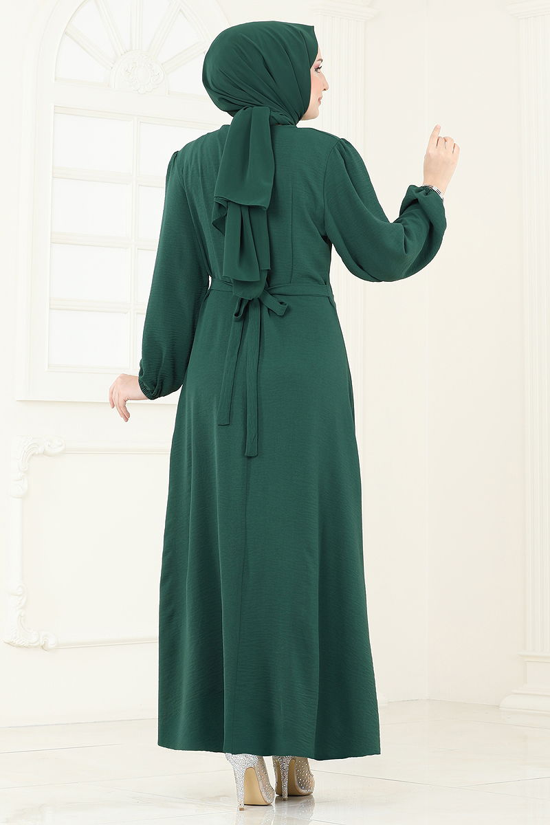 المنتج لديه ياقة دائرية. غير مبطنة. المنتج به سحاب في جزء من الخلف. يتم خياطة الحزام على المنتج. تم اضافة اللؤلؤ بطريقة التعبئة السوار مطاطي. قد يكون هناك اختلاف في الدرجة اللونية في المنتج بسبب التقاط الصور الفوتوغرافية.
