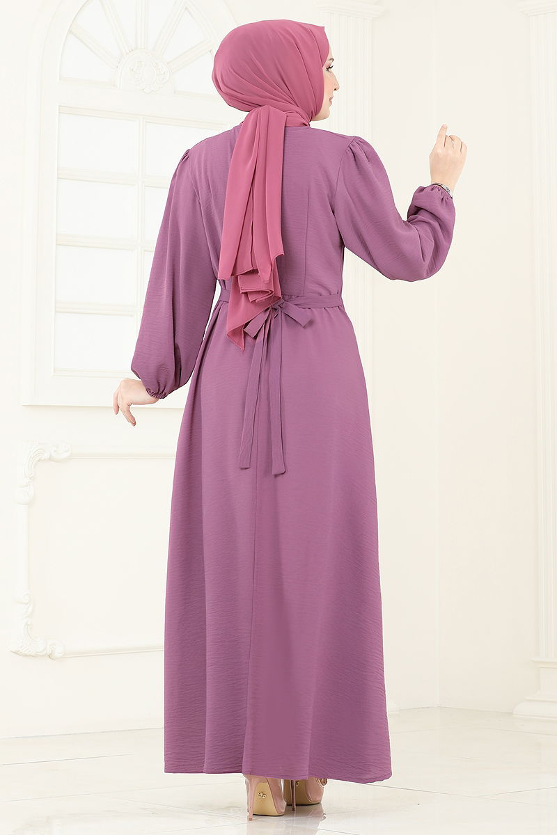 Dazzle with the unique design and elegant pearl details of the Pearl Detailed Aerobin Dress, a modest garment suitable for all seasons. Made from aerobin fabric, this dress is lightweight and breathable, making it comfortable to wear all day long. Easily washable at 30 degrees with delicate care, it features a crew neck and elasticated cuffs for both style and practicality. With a zipper at the back and a sewn-in belt, this model offers a modern silhouette, while the pearl embellishments enhance its elegance.