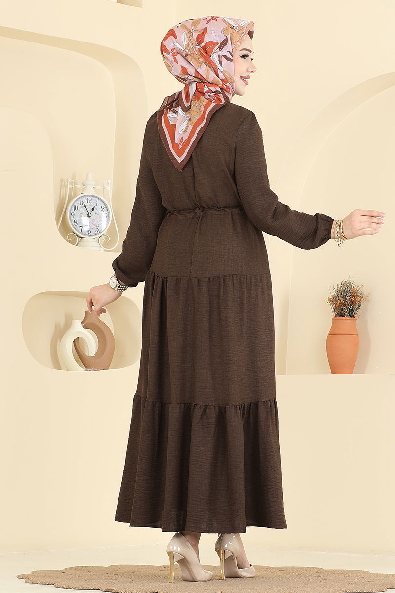 The Layered Skirt Sofia Dress stands out with its unique design and layered skirt structure. This modest dress, suitable for all seasons, is made of Sofia linen fabric and features a round neck design. Its liner-free structure and accessible button detail on the back make it easy to wear. It offers a comfortable fit with its elastic cuffs and drawstring waist design. Recommended to be washed at 30 degrees with gentle care. The Sofia Dress, a must-have in the wardrobe of every woman who wants to feel like a princess, offers elegance and comfort together.