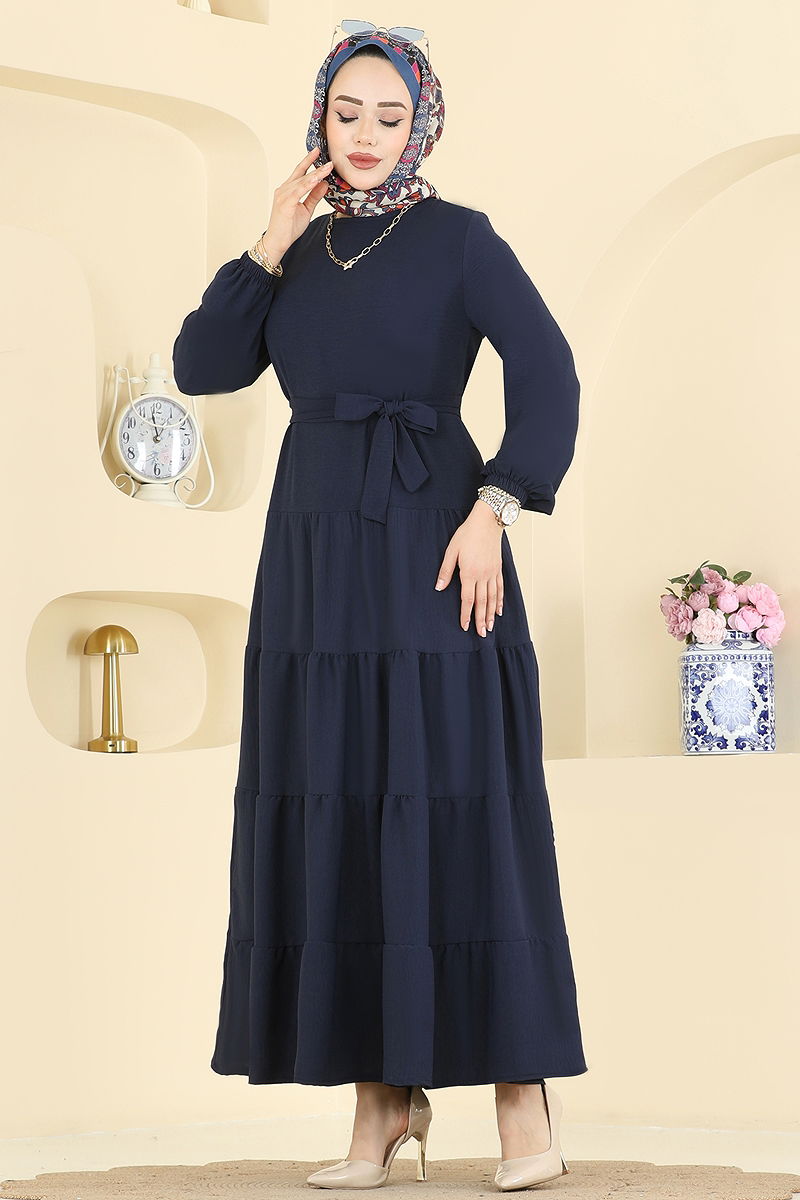 The Layered Skirt Aerobin Dress is an ideal choice for those looking for chic and modern modest fashion, suitable for all seasons. Made from Aerobin fabric, this dress features a bike neck and elasticated cuffs, and is unlined. This dress, which can keep your elegance in all seasons, can be washed delicately at 30 degrees. The belt included with the product offers comfortable use and can be removed if desired. Additionally, a practical button at the back ensures easy wear.
