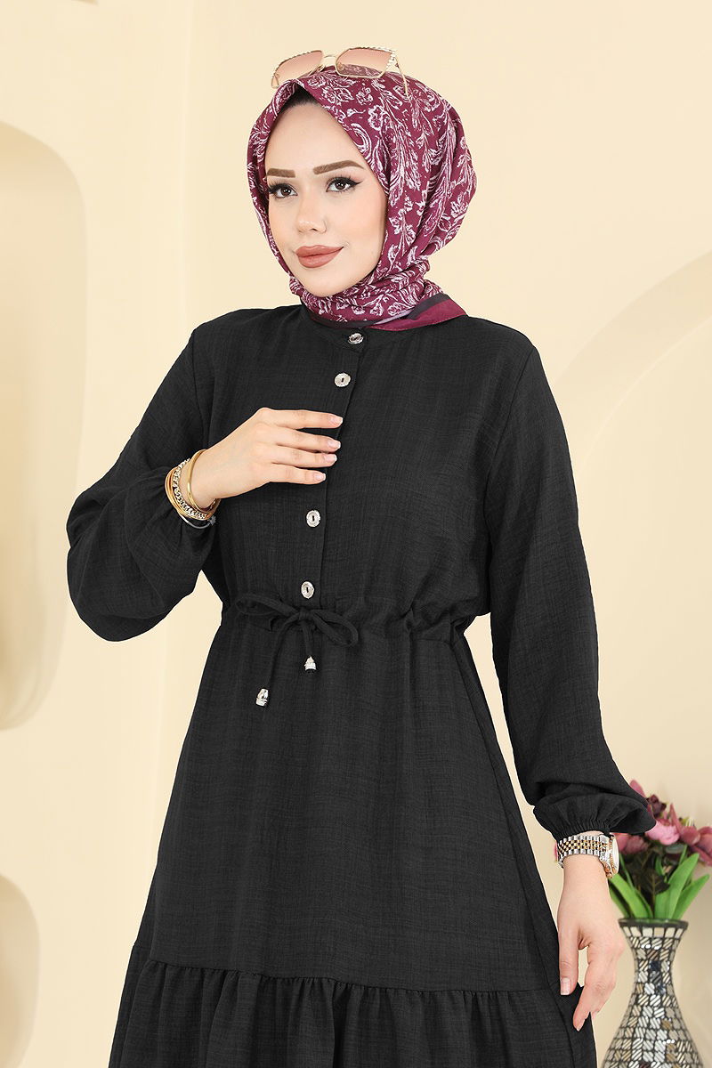 The Beli Tunnels Sofia Dress is a sophisticated and elegant modest dress design. Designed to ensure your comfort throughout the Four Seasons, this dress is made from special Sofia Linen fabric, which is light and breathable. It offers a delicate wash at 30 degrees and adds elegance with its semi-mandarin collar design. The front half-buttons make it practical to use. The belted waist design allows it to adapt to different body types, and it has elastic cuffs and is unlined. Shine like a polestar and let your elegance speak for itself in every setting.