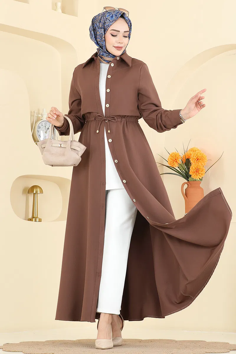 Product Feature : It is a new season hijab fashion product. It has a laced waist. The product has a Shirt collar. The product has From the front buttons. Unlined. Cuff buttons are active. There may be a tonal difference in the product due to concept photo shoots.