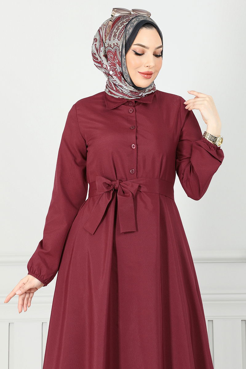 المنتج لديه ياقة القميص. المنتج به أزرار نصف أمامي. غير مبطنة. الحزام متضمن، ،يمكن استخدامها حسب الرغبة السوار مطاطي. قد يكون هناك اختلاف في الدرجة اللونية في المنتج بسبب التقاط الصور الفوتوغرافية.