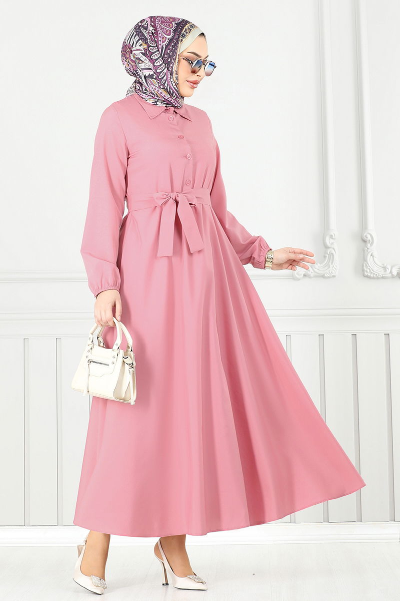 المنتج لديه ياقة القميص. المنتج به أزرار نصف أمامي. غير مبطنة. الحزام متضمن، ،يمكن استخدامها حسب الرغبة السوار مطاطي. قد يكون هناك اختلاف في الدرجة اللونية في المنتج بسبب التقاط الصور الفوتوغرافية.