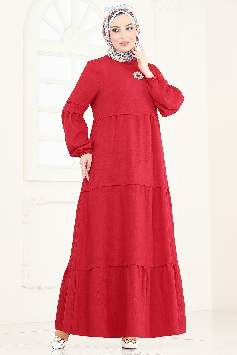 This elegant Tiered Skirt Linen Dress is a modest attire that can be comfortably worn in all seasons. Made from breathable linen fabric, this dress is machine washable at a gentle 30-degree cycle. It features a bicycle neckline and elasticated cuffs that enhance its modern and practical design. The dress is unlined and includes a convenient button at the back. Please note, accessories are not included. Whether for daily wear or special occasions, you will love wearing this dress.