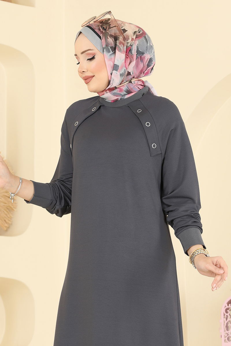 The Crystal Dress with Birdseye Detail is a refreshing addition to modest fashion. Suitable for wear in all seasons, it stands out with its special crystal fabric, bicycle collar design, and unlined structure. It can be washed gently at 30 degrees. Embellished with birdseye details, this dress is both stylish and comfortable. Measurements of the model: Height: 165 cm, Chest: 80 cm, Waist: 68 cm, Hips: 96 cm, Weight: 54 kg.