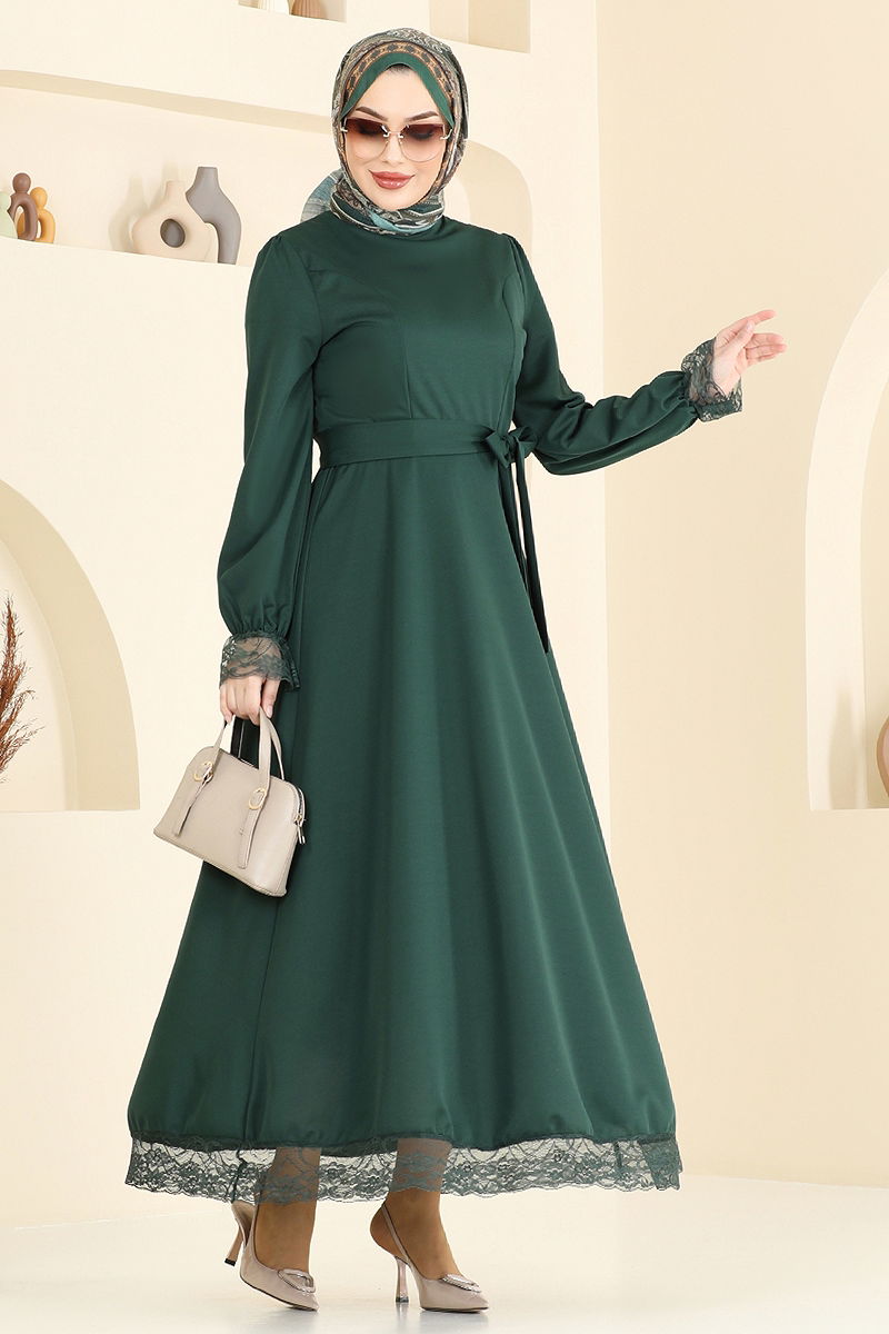يوجد زر يمكن استخدامه من الخلف. المنتج لديه ياقة بيضوية. غير مبطنة. المنتج به سحاب في جزء من الخلف. التفاصيل المخرمة مخيطة. الحزام متضمن، ،يمكن استخدامها حسب الرغبة الملحقات غير متضمنة. السوار مطاطي. قد يكون هناك اختلاف في الدرجة اللونية في المنتج بسبب التقاط الصور الفوتوغرافية.