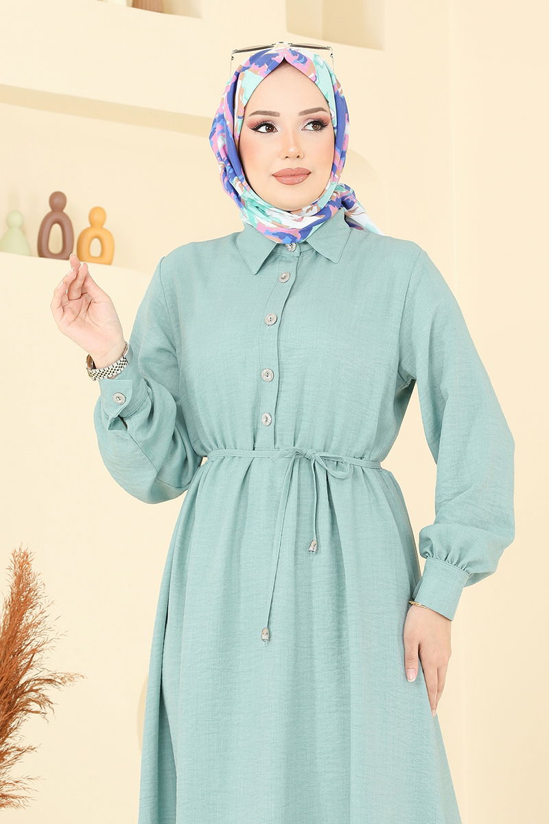 المنتج لديه ياقة القميص. المنتج به أزرار نصف أمامي. غير مبطنة. المنتج يحتوي على حزام خصر مُخاط. الحزام متضمن، ،يمكن استخدامها حسب الرغبة أزرار الكفة نشطة. قد يكون هناك اختلاف في الدرجة اللونية في المنتج بسبب التقاط الصور الفوتوغرافية.