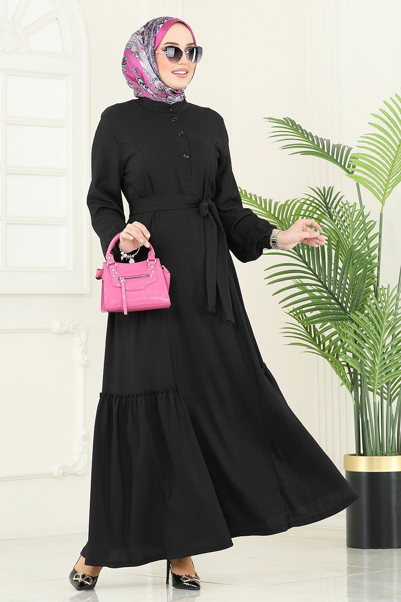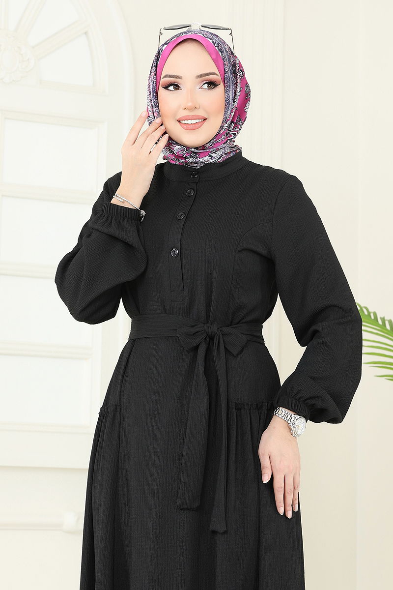 المنتج لديه ياقة دائرية. المنتج به أزرار نصف أمامي. غير مبطنة. الحزام متضمن، ،يمكن استخدامها حسب الرغبة السوار مطاطي. قد يكون هناك اختلاف في الدرجة اللونية في المنتج بسبب التقاط الصور الفوتوغرافية.