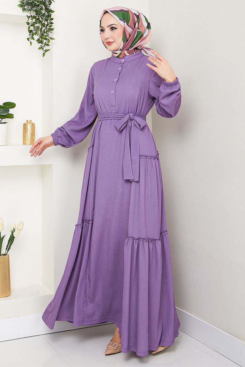 المنتج لديه ياقة دائرية. المنتج به أزرار نصف أمامي. غير مبطنة. الحزام متضمن، ،يمكن استخدامها حسب الرغبة السوار مطاطي. قد يكون هناك اختلاف في الدرجة اللونية في المنتج بسبب التقاط الصور الفوتوغرافية.