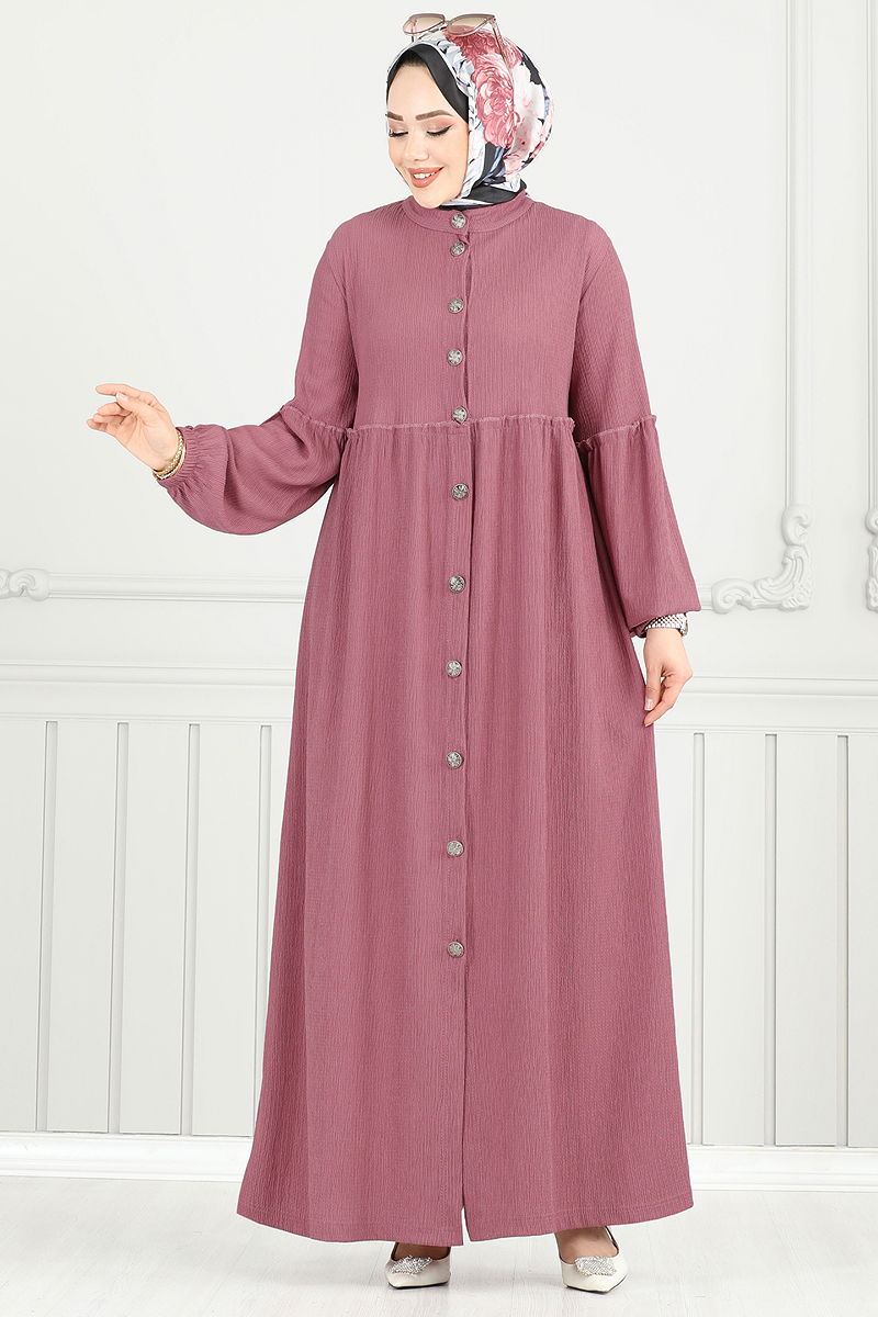 المنتج لديه ياقة نصف بيضوية. المنتج به أزرار من الأمام. غير مبطنة. المنتج يحتوي على حزام خصر مُخاط. السوار مطاطي. قد يكون هناك اختلاف في الدرجة اللونية في المنتج بسبب التقاط الصور الفوتوغرافية.