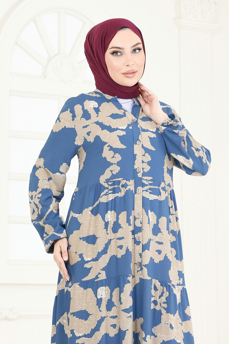 Featuring an innovative and stylish design, the Patterned Viscose Dress can be comfortably worn in all seasons. Made of lightweight, breathable viscose fabric, this dress should be hand washed. It offers a V-neck design and elastic cuffs, providing comfort with its unlined structure. The buttons at the front add a chic detail as well as practicality for day-to-day use. Available in size 38 with the ideal measurements: Height: 167 cm, Chest: 90 cm, Waist: 70 cm, Hips: 100 cm, Weight: 59 kg. This dress complements your daily style and is a suitable choice for modest wear.