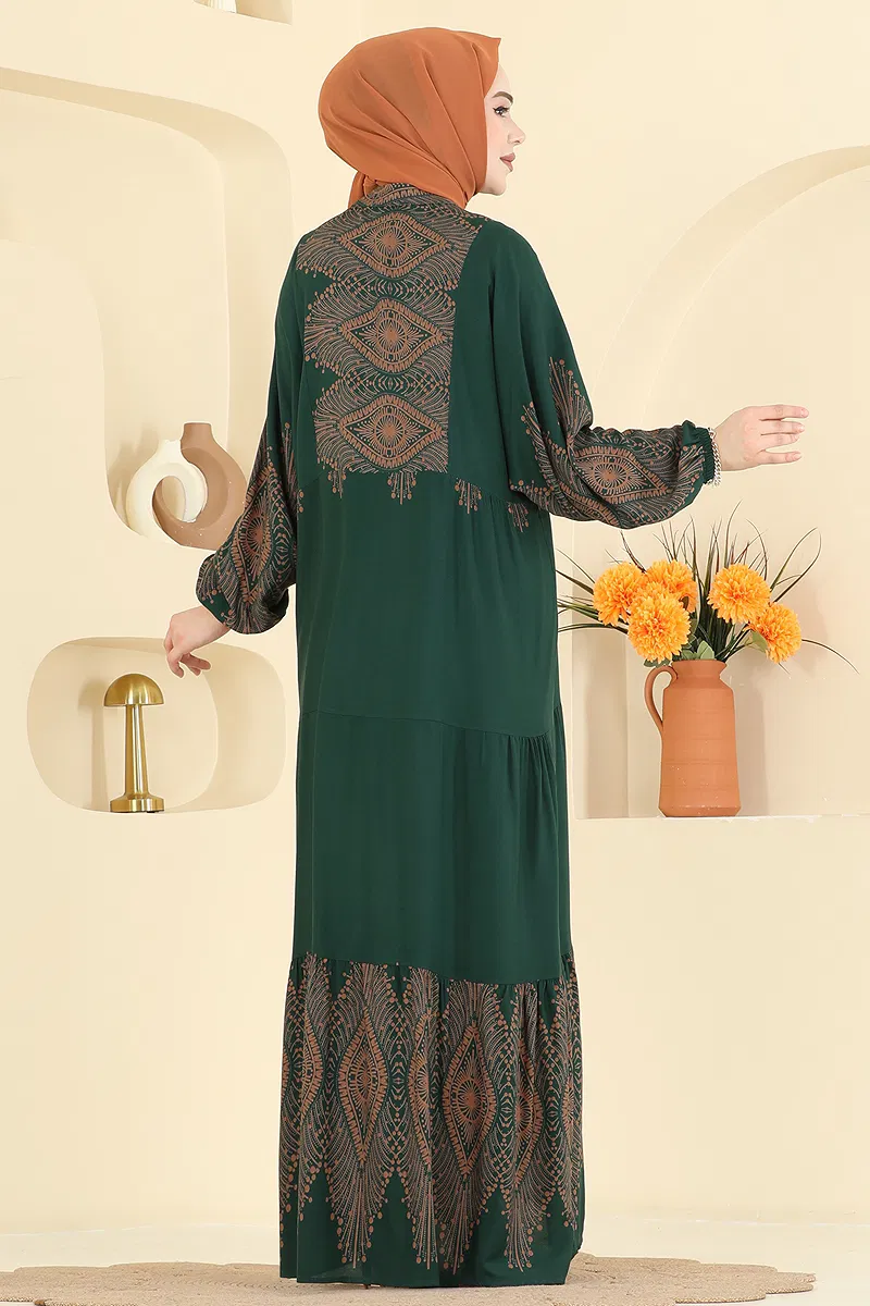 Elegant and modern, the Button Detailed Viscose Dress is perfect for your spring and summer wardrobe. Made from breathable and comfortable viscose fabric, this modest dress ensures comfort on warm days. It features a V-neck design and buttons at the front, combining both style and practicality. The elastic cuffs offer ease of use, and it's suitable for gentle washing at 30 degrees.