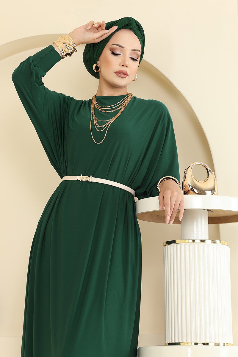 Elevate your style with the Bat Sleeve Sandy Dress, a must-have for any season! This modest dress is crafted from delicate Sandy fabric and features a bicycle collar design for a modern look. The bat sleeves provide the freedom to move comfortably, and the dress can be washed gently at 30 degrees. Available in standard size and ranging from sizes 38-48, it fits virtually any body type. With the Bat Sleeve Sandy Dress, you'll feel better while maintaining style and comfort.