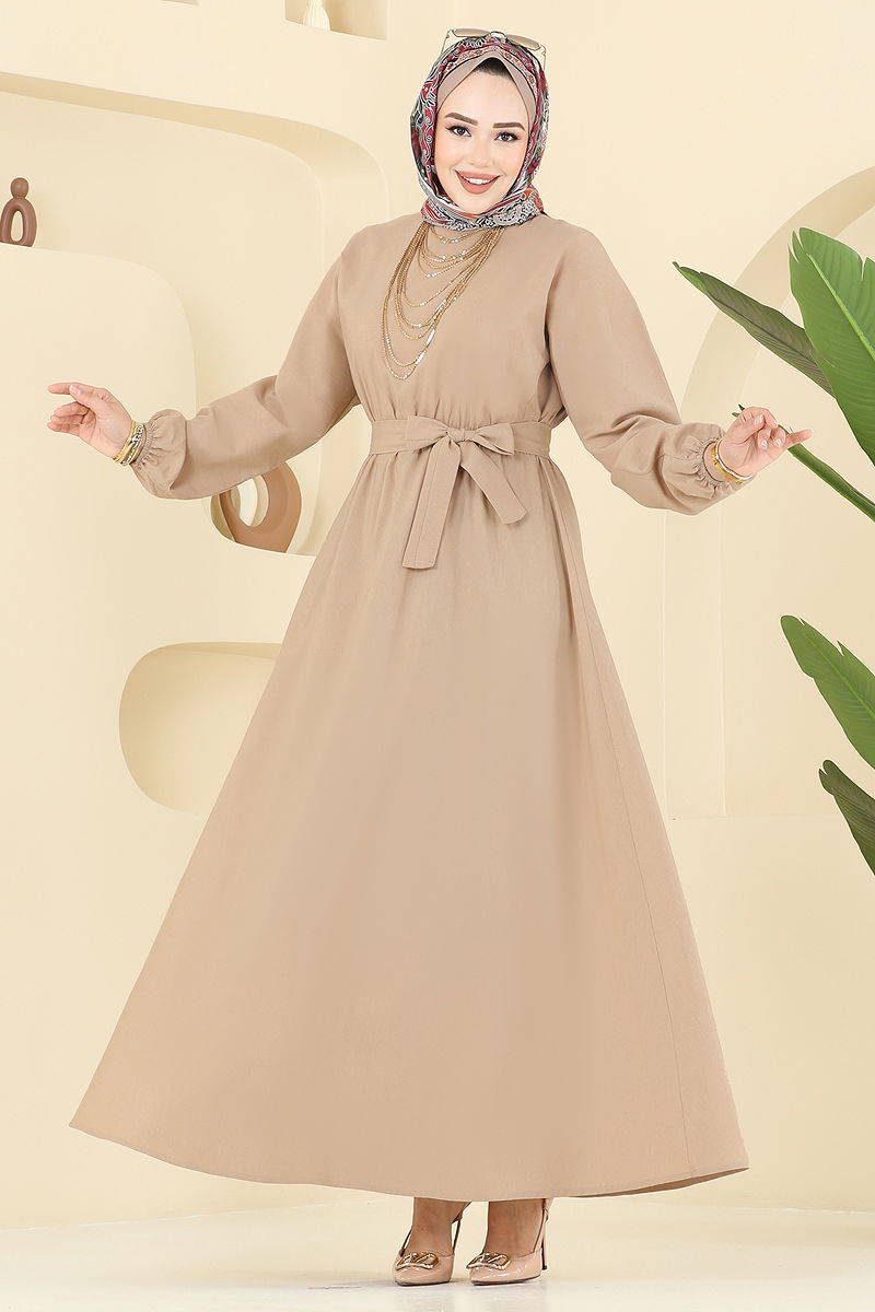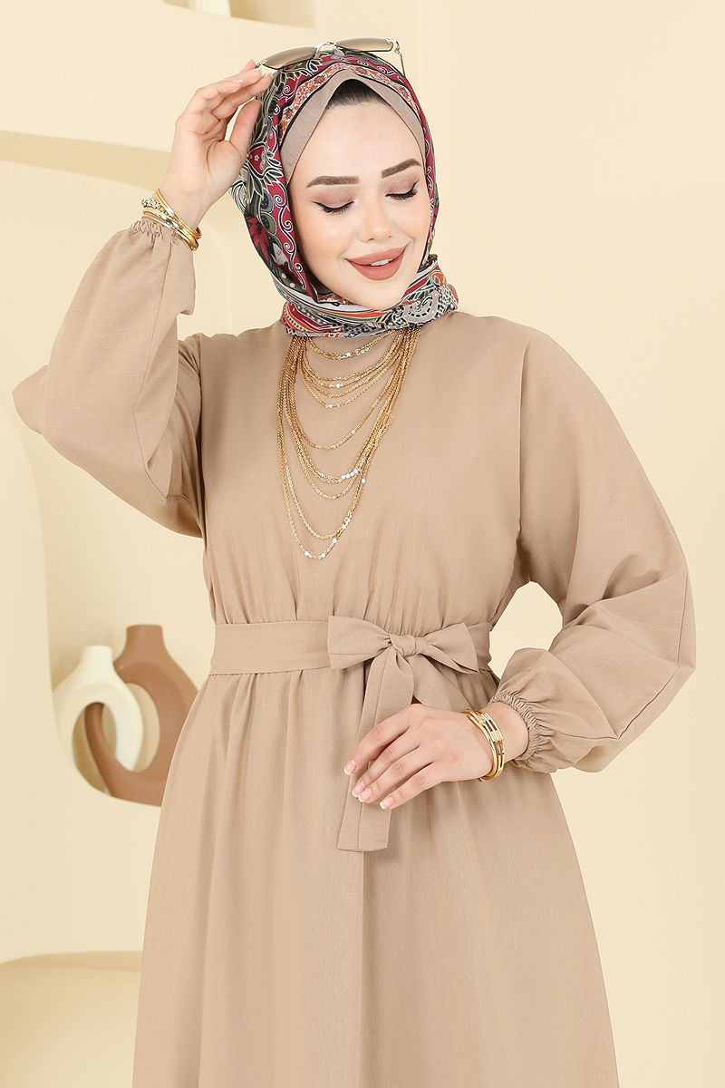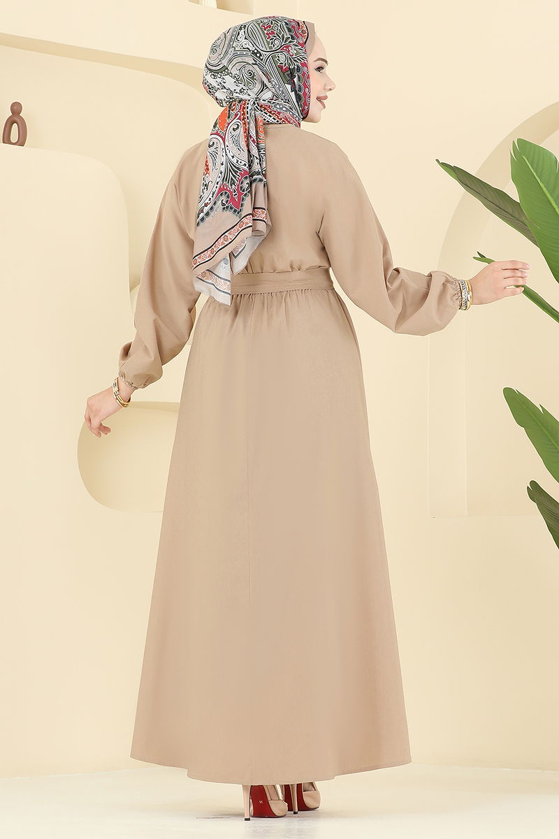 يوجد زر يمكن استخدامه من الخلف. المنتج لديه ياقة دائرية. غير مبطنة. المنتج يحتوي على حزام خصر مطاطي. الحزام متضمن، ،يمكن استخدامها حسب الرغبة السوار مطاطي. قد يكون هناك اختلاف في الدرجة اللونية في المنتج بسبب التقاط الصور الفوتوغرافية.