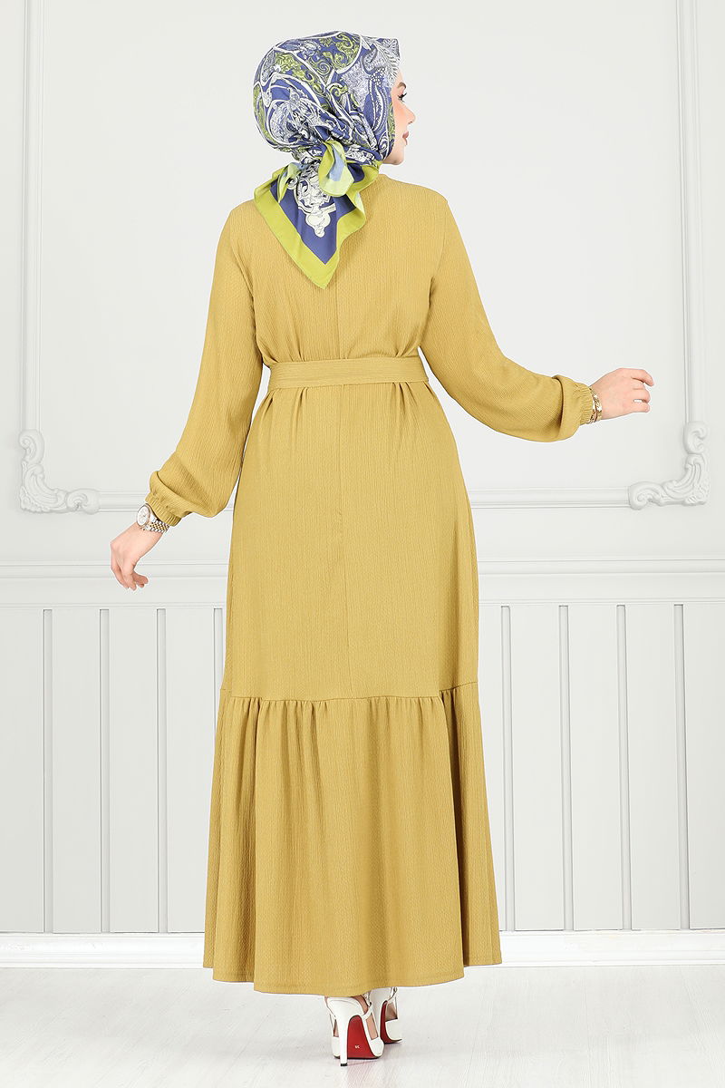 This stylish and functional Brooch Detail Crinkled Dress offers comfort and style in any season. Made from crinkled fabric, this dress can be cleaned with a gentle wash at 30 degrees. With a crew neck and unlined design, this model adds a modern touch to your look, while its elasticated cuffs and slip-on style ensure practical wear. The included belt and brooch allow for customizable adjustments according to your taste. This dress, with its comfortable fabric and adjustable accessories, is set to become an indispensable part of your wardrobe.