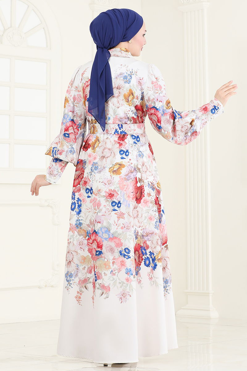 The SUAL Coated Belted Satin Dress is an ideal modest wear model for all seasons. The elegant texture of the satin fabric, shirt collar design, and front button details blend classic and contemporary elements. The dress is unlined, offering a light and comfortable wear. The included belt is specially designed to prevent waving and can be optionally removed. Active cuff buttons add functionality. Length: 165 cm, Chest: 80 cm, Waist: 66 cm, Hips: 100 cm. The product displayed is size 38.