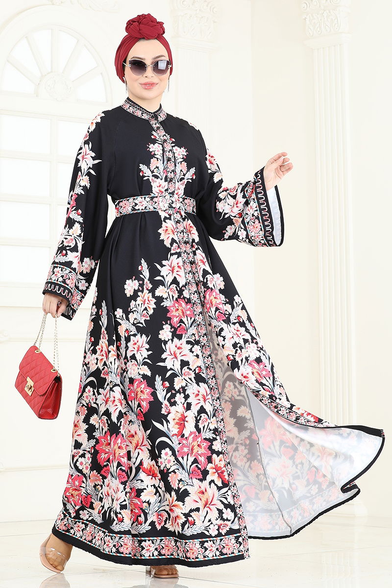 المنتج لديه ياقة نصف بيضوية. المنتج به أزرار من الأمام. غير مبطنة. الحزام متضمن، ،يمكن استخدامها حسب الرغبة أكمام عريضة قد يكون هناك اختلاف في الدرجة اللونية في المنتج بسبب التقاط الصور الفوتوغرافية.