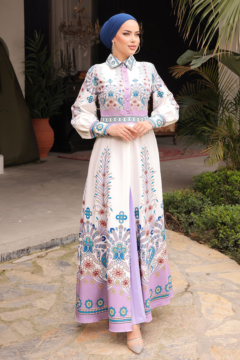 4249JNF844 ارجواني فاتح فستان