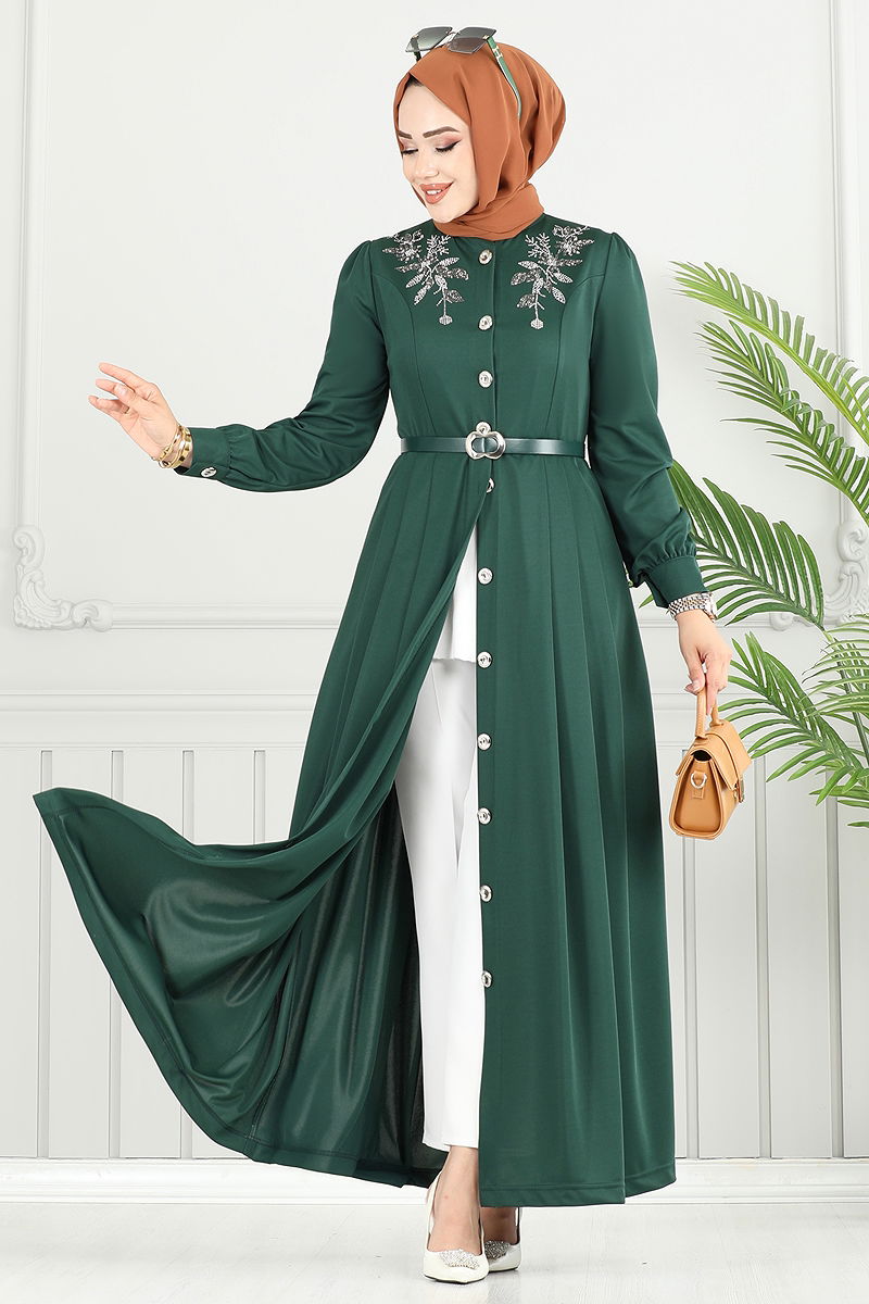 Product Feature : It is a new season hijab fashion product. The product has a Half Judge collar. The product has From the front buttons. Unlined. The stones are glued. The product has a stitched waistband. Belt included, optional not available. Cuff buttons are active. There may be a tonal difference in the product due to concept photo shoots.
