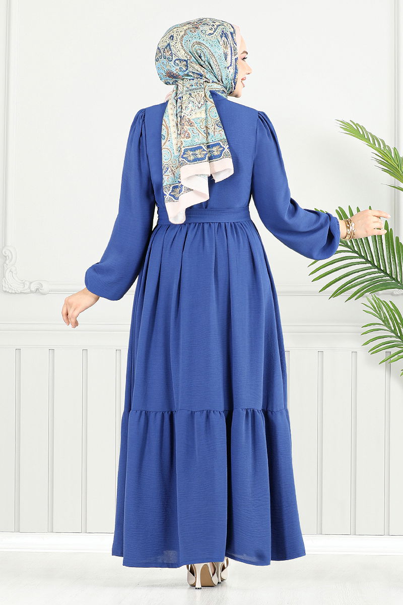 المنتج لديه ياقة نصف بيضوية. المنتج به أزرار نصف أمامي. غير مبطنة. المنتج يحتوي على حزام خصر مُخاط. الحزام متضمن، ،يمكن استخدامها حسب الرغبة السوار مطاطي. قد يكون هناك اختلاف في الدرجة اللونية في المنتج بسبب التقاط الصور الفوتوغرافية.