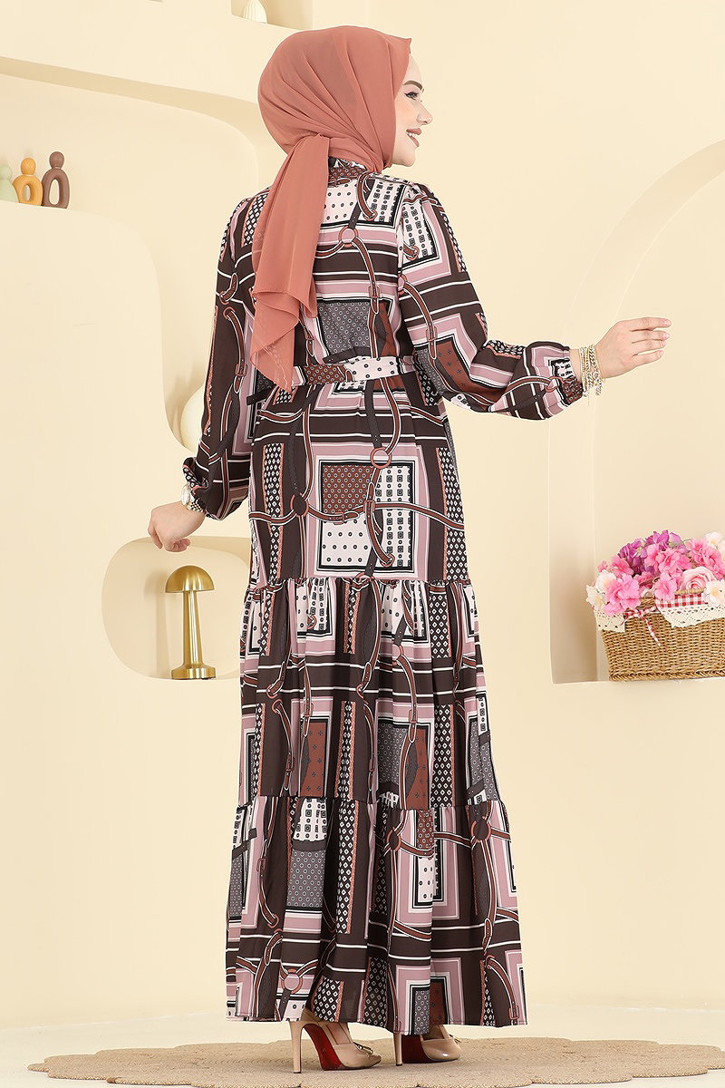 Patterned Belted Long Dress is an all-season modest wear item that perfectly blends elegance with comfort. This dress features a button-down front and a stand-up collar design, offering both style and practicality. Made from Jesika fabric, it is suitable for gentle wash at 30 degrees. The belt is designed with stitched ends, leaving the middle part free, preventing any waving. The belt can be optionally removed, and the cuffs are elasticated. Elevate your style with this versatile dress.